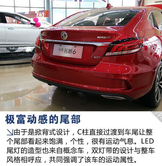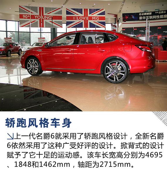 2017年11月3日,备受期待的全新名爵6在南京正式上市,全系指导价为9.68万元-13.28万元,在享受了厂家提供的2.5%购置税补贴之后,售价为9.48万元-12.98万元。新车全系搭载1.5T发动机,共计推出6款车型。全新名爵6采用了名爵最新的家族式设计,配备了最新升级的斑马智行2.0互联系统,加上7秒就能破百的运动属性,这款车还未上市就得到了充分的关注。既然是一款平民小钢炮,全新名爵6的静态表现究竟如何,一起来看下面的实拍。