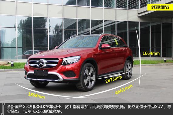 GLC定位于中型豪华SUV市场,用于接替现售的GLK,在中国市场的主要竞争对手为奥迪Q5、宝马X3、沃尔沃XC60、路虎发现神行和即将国产的凯迪拉克XT5。奔驰GLC(相比上一代GLK)的设计风格出现180度转变,散发出浓厚的豪华气息,明显比年迈的奥迪Q5和宝马X3更具感召力。
