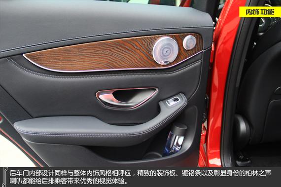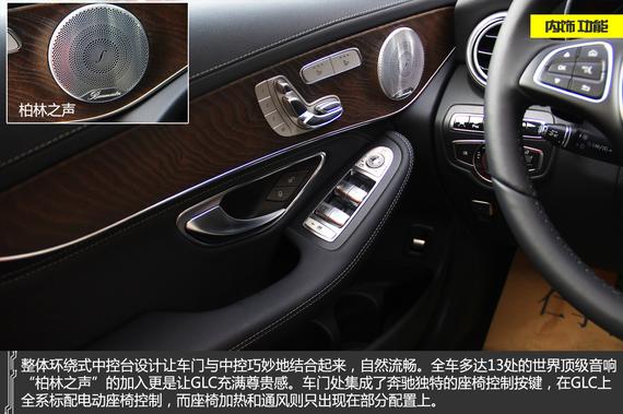 内饰方面,北京奔驰GLC的做工与用料整体延续了北京奔驰C级轿车的设计风格,同样的材质与样式依旧很高档,在同级别车型中也是相当突出,高配车型诸如座椅通风、柏林之声音响等配置体现出其品牌豪华的本质。