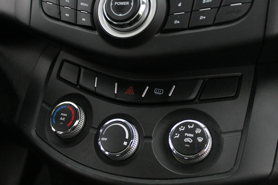 即便是我们试驾的这辆顶配车型,也没有装配导航系统,好在简单的多媒体机头带有USB接口和SD卡插槽。多媒体面板上的按键设计更多的是为了实现左右两侧对称,实际上通过方向盘的多功能按键就能实现几乎所有的功能。出于成本方面的原因,陆风X5仅装配了手动空调,三个简单的旋钮即可实现所有的功能。
