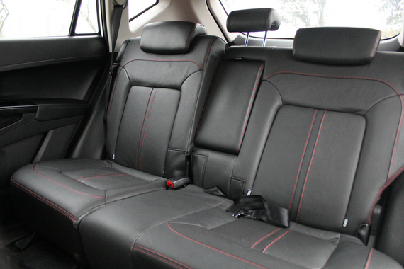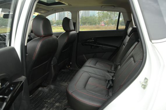 相比前排座椅,后排座椅在舒适性方面并没有太大的区别,由于陆风X5为前置前驱布局,因此后排地板中部较为平坦,即使是后排中间座位,仍然能够正常乘坐,并且后排座椅靠背角度能够进行调节。