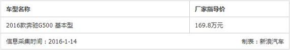 新浪汽车讯 2016年1月15日,梅赛德斯·奔驰在海拉尔正式宣布旗下硬派豪华越野车2016款奔驰G级正式上市。2016款奔驰G级将针对外观与内饰细节进行调整,并换装全新的涡轮增压发动机。新车共推出1款车型,售价为169.8万元。