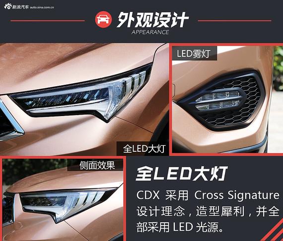 此次上市的CDX采用了代表Acura(讴歌)品牌未来设计方向的Acura Precision Concept概念车设计元素。以往讴歌标志性的盾形进气格栅被全新大尺寸五边形设计取代,同时整体轮廓也采用了时下流行的跨界风格,并搭配了全LED大灯灯组。